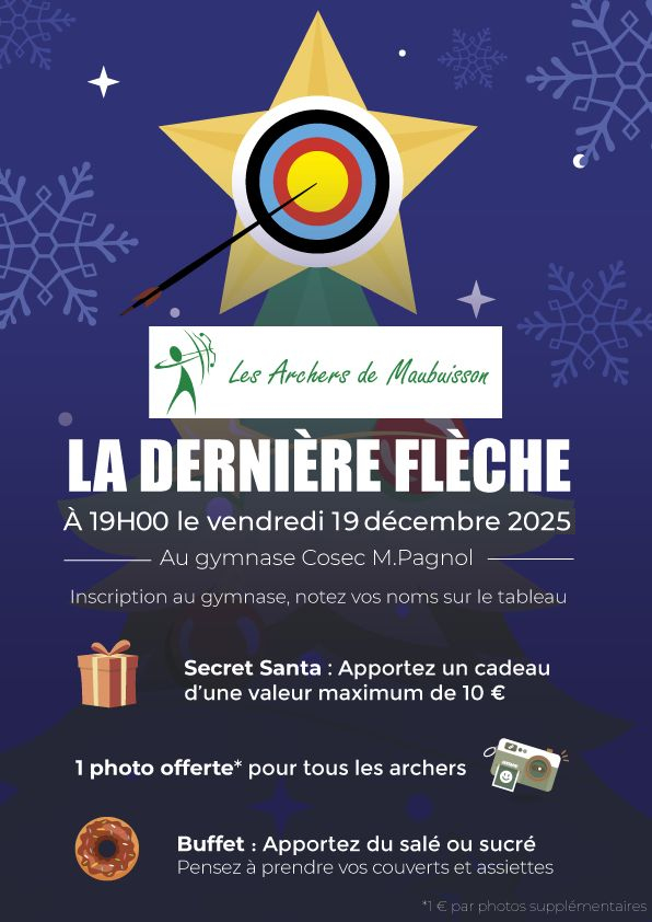 Pensez à vous inscrire sur le tableau au gymnase en précisant à combien de personnes vous viendrez, si vous participerez au tir et si vous apportez du salé ou du sucré pour le buffet qui suivra le tir.